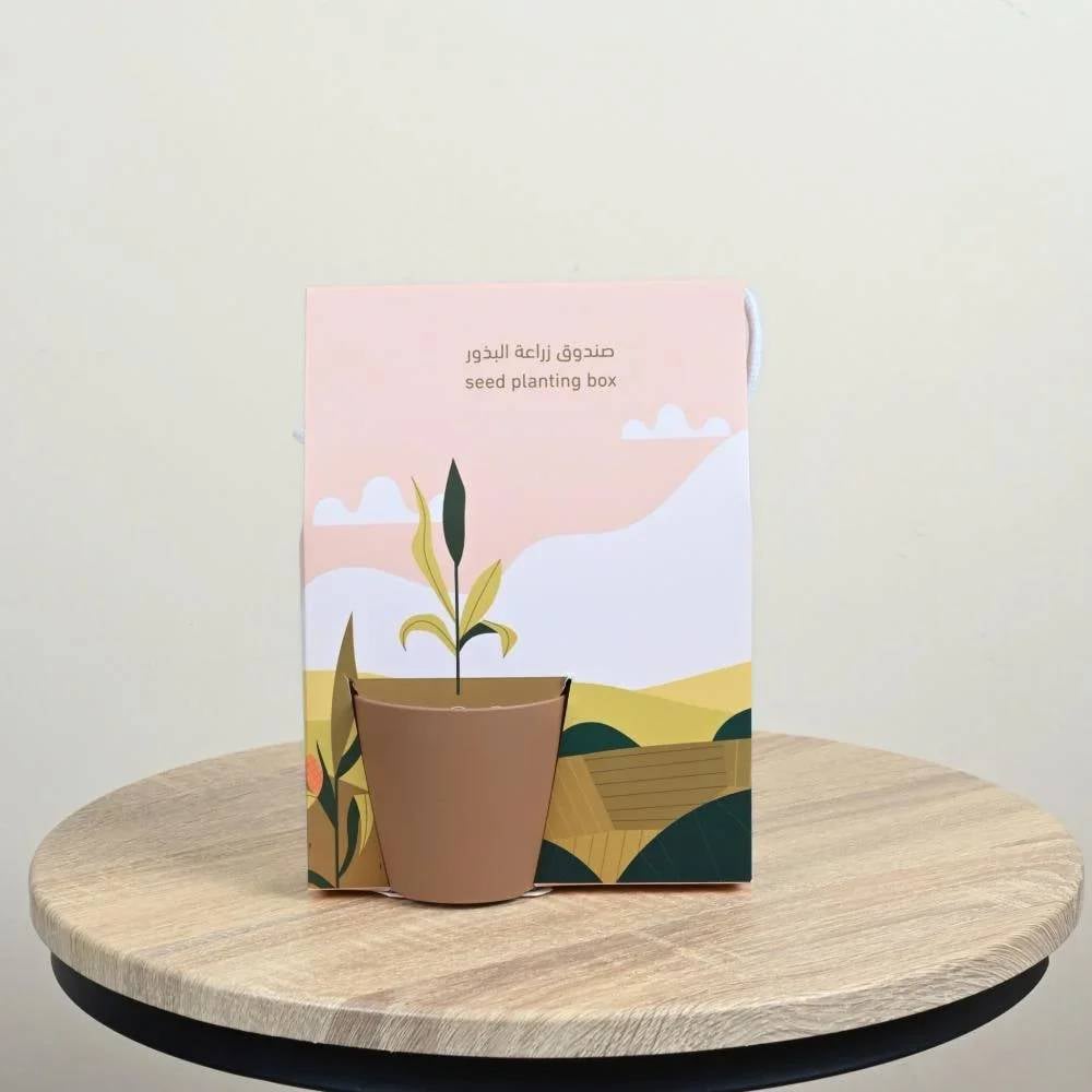 - هدية جاهزة تحتوي على بذور طبيعية، تربة، بخاخ، ومركن زراعة، بتغليف أنيق. مثالية كتوزيعة في الفعاليات أو هدية مختلفة في الأعياد والمناسبات