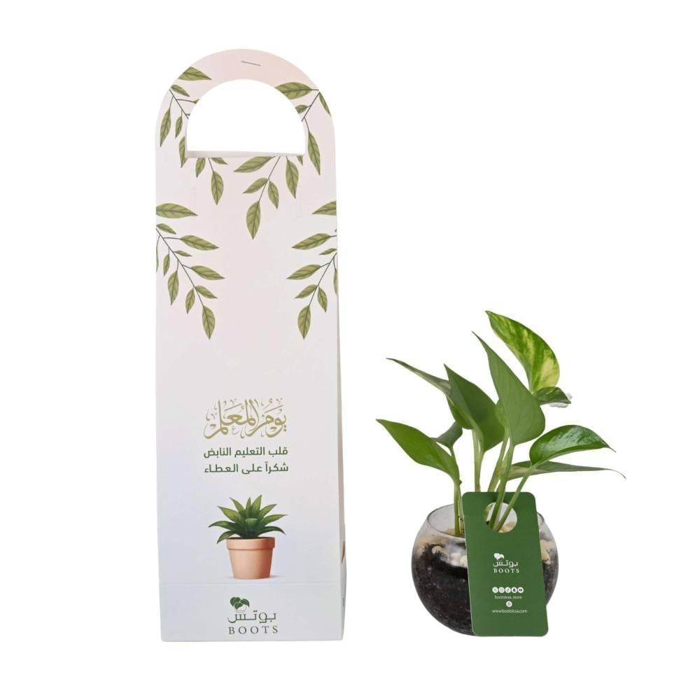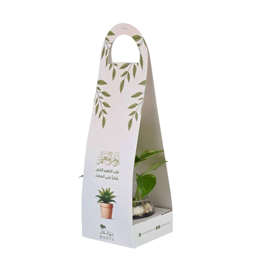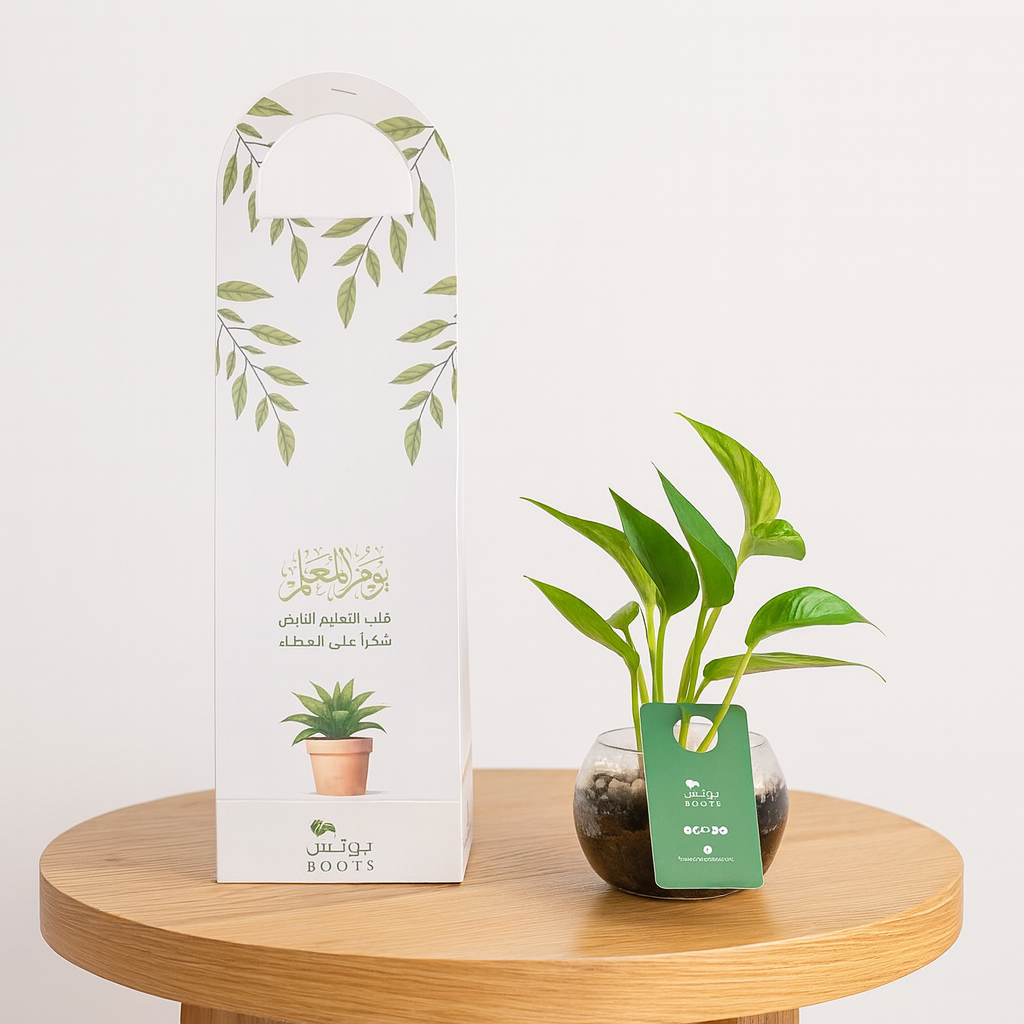 توزيعات يوم المعلم المميزة من بوتس، تحتوي على نبتة طبيعية أنيقة داخل عبوة هدية مصممة بطابع احتفالي. هدية مثالية للتعبير عن الشكر والتقدير للمعلمين، تجمع بين الجمال الطبيعي واللمسة الراقية لتبقى ذكرى تدوم